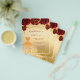 Por favor, note que este convite está no papel de folheto e é muito fino. Os envelopes não estão incluídos. Para convites mais espessos (mesmo design) visite nossa loja. Um convite moderno, na moda e glamouroso para uma doce festa de aniversário 16, 16. Um fundo de ouro falso com pó de ouro falso, um vestido e rosas vermelhas, florais. O nome é escrito com um moderno estilo escrito à mão. Personalize e adicione os detalhes da sua festa.