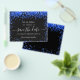 Observe que esta opção Save the date (Salvar a data) está no papel do folheto e muito fina. Os envelopes não estão incluídos. Para salvar o cartão Data (mesmo design) mais espesso, visite nossa loja. Um fundo preto decorado com confete azul real. Personalize e adicione uma data e nome/idade. O texto: Salvar a Data é gravado com um script de estilo com letra de tendência grande.