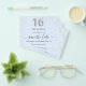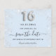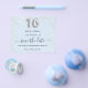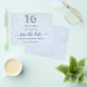 Observe que esta opção Save the date (Salvar a data) está no papel do folheto e muito fina. Os envelopes não estão incluídos. Para Cartões salve a data mais espessos (mesmo design) visite nossa loja. Uma moça e moda Salvem a data para uma doce festa de aniversário 16, 16. Um fundo azul-bebê decorado com poeira falsa. Personalize e adicione uma data e nome/idade. O texto: Salvar a Data é gravado com um script de estilo com letra de tendência grande. Número 16 com uma fonte no estilo do balão.