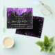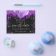 Observe que esta opção Save the date (Salvar a data) está no papel do folheto e muito fina. Os envelopes não estão incluídos. Para salvar o cartão Data (mesmo design) mais espesso, visite nossa loja. Uma moça e moda Salvem a data para uma doce festa de aniversário 16, 16. Um fundo preto decorado com gotas de brilho púrpura, faíscas e balões. Personalize e adicione uma data e nome/idade. O texto: Salvar a Data é gravado com um script de estilo com letra de tendência grande.