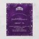 Por favor, note que este convite está no papel de folheto e é muito fino. Os envelopes não estão incluídos. Para convites mais espessos (mesmo design) visite nossa loja. Para um doce elegante 16, 16 anos. Uma cor de fundo roxa, a cor roxa é irregular. Decorado com pó falso prateado e uma tiara, coroa. Personalize e adicione um nome, idade e detalhes da festa. O nome é escrito com um script de estilo manuscrito