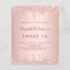 Por favor, note que este convite está no papel de folheto e é muito fino. Os envelopes não estão incluídos. Para convites mais espessos (mesmo design) visite nossa loja. Um convite moderno, na moda e glamouroso para uma festa de aniversário Doce 16, 16. Um fundo rosa de gradiente dourado com um brilho elegante, pingos de tinta pingando. O nome é escrito com um moderno e escuro, rosa dourado, escrito com letra de estilo manuscrito. Personalize e adicione os detalhes da sua festa.