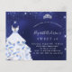 Por favor, note que este convite está no papel de folheto e é muito fino. Os envelopes não estão incluídos. Para convites mais espessos (mesmo design) visite nossa loja. Um convite moderno, na moda e glamouroso para uma doce festa de aniversário 16, 16. Um fundo azul da meia-noite com poeira falsa, uma tiara e um vestido. A cor azul é irregular. O nome é escrito com um moderno estilo escrito à mão. Personalize e adicione os detalhes da sua festa.