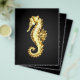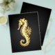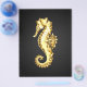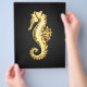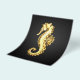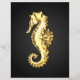 Artista, polígono, cavalo marinho espumante, folha de ouro sobre fundo negro.