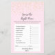 Este jogo Dourado de Confetti Pink "Adivinha o Preço Certo" é perfeito para um chá de fraldas clássico, moderno ou borrifo. O design apresenta um confete dourado falso em um fundo cor-de-rosa com caligrafia de cinza elegante.