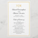 O programa de casamento do orçamento elegante com o seu monograma e uma fronteira em ouro falso em volta do seu detalhe. Seus nomes e cabeçalhos estão na caligrafia. A frente tem sua ordem de cerimônia e a parte de trás tem sua festa de casamento e obrigado. Estes programas de casamento simples e clássicos são excelente de um casamento formal e são impressos em folhas de papel para uma opção barata e econômica.