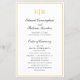 O programa de casamento do orçamento elegante com o seu monograma e uma fronteira em ouro falso em volta do seu detalhe. Seus nomes e cabeçalhos estão na caligrafia. A frente tem sua ordem de cerimônia e a parte de trás tem sua festa de casamento e obrigado. Estes programas de casamento simples e clássicos são excelente de um casamento formal e são impressos em folhas de papel para uma opção barata e econômica.