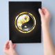 Símbolo de joias, ouro e yin yang preto em um fundo preto. Dourado yin yang.
