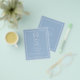 A dusty blue colored background, white colored frame. Personalize and add your monogram initials, names and the details.