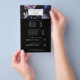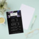 Elegant flyer design displays your services, price list or business information beneath a top border of pale lavender purple roses and deep indigo blue peonies on a dark and dramatic background with your name and/or business name overlaid in modern lettering. Includes four customizable headings and body text fields, and space for your business contact information along the bottom. To adjust layout, enter your text and then use the Customize function to change positioning and font sizes.