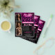 Esta elegante e sofisticada design é perfeita para promover o seu salão de cabelo ou serviços de estilos. O fundo escuro complementa os sotaques cor-de-rosa, criando uma sensação luxuosa. Este design é perfeito para o marketing das suas ofertas especiais para 2025. Personalize este modelo com seus próprios detalhes e imagens e impressão-o para atrair novos clientes. A funcionalidade do código QR permite que os clientes visitem facilmente o seu site e marquem compromissos. Faça uma impressão duradoura e faça crescer sua clientela com este folheto premium.