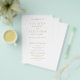 O programa de casamento "faux gold Budget" (impresso em papel para folheto fino), que inclui um design simples e mínimo com os nomes da noiva e do noivo numa fonte serif tradicional e o meio e sobrenomes num roteiro de caligrafia elegante. Um estilo clássico que é perfeito para um casamento formal.