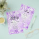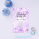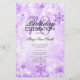 Design de "Programa de Festa de aniversário" elegante com flocos de neve brilhantes de inverno e luzes em roxo com texto personalizado.