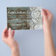 elegantes folhetos promocionais de madeira de celeiro azul renda branca rústica country