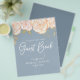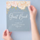 Este design apresenta um elegante e moderno indicativo de convidado, recepções de casamento de cartazes de guestbook, romântico, verde moderno k023, botânica da folhagem verde-aquática, caligrafia simples elegante e moderna, perfeita para a queda do verão primavera, um arranjo moderno de rosa, um guião de caligrafia caprichosa, flores modernas de blush, um mínimo moderno símbolo de casamento