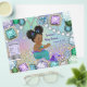 Envelopes para sacos de chips de chá de bebê sereia com sereia afro-americana com cabelo afro fofo em um belo fundo de joias. Você pode personalizar este envelope para saco de chips de chá de bebê sereia simplesmente adicionando seus detalhes. Para montar, envolva o folheto em torno do seu saco de tamanho de chip ou lanche e prenda com fita adesiva dupla face ou comum. Cabe em saco de chip ou lanche de 1 onça - OU - você pode deixar a parte superior aberta, inserir um saco de sanduíche e adicionar sua própria mistura de lanche a granel e selar a parte superior.