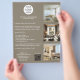 Promova sua marca com este folheto profissional elegante e personalizável, projetado para criar uma impressão duradoura. Carregue 3 fotos pessoais ou de portfólio, adicione seu texto personalizado ou lista de serviços e inclua seus detalhes de contato para ajudar os clientes a chegar a você facilmente. Um código de QR digitalizável vincula diretamente à sua página de reserva de consulta, mídia social, site ou qualquer URL personalizado — fazer mais fácil do que nunca conectar-se. Ideal para designers de interiores, estilistas pessoais, treinadores, realtores, profissionais de beleza e outros profissionais baseados em serviços que querem uma ferramenta de marketing polida e moderna.