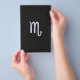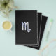 Um símbolo do zodíaco Escorpião prateado cromado em uma textura de pele de cobra preta carvão decor. Um design moderno e ousado para uma ótima ideia de presente de aniversário personalizado.