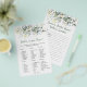 Este design apresenta uma ilustração das folhas de eucalipto e da folhagem verde em estilo aquarela. Na parte superior da placa - confete de efeito ouro e verde. Jogos de Chá de panela verde - Cartão duplo - Dois jogos em um! Bridal What's in your Purse Game na frente da carta e do jogo Wedding Scramble no sentido inverso. A chave da resposta para o jogo de Casamento: Noiva, Groom, Bolo Casado, Lua de Honra, Amor Verdadeiro, Vestido Branco, Lace, Felicidade, Vela de Unidade, Padrinhos de casamento, Oficiente, Capela, Voos Casamentos, Brincadeira.