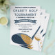 Todo o texto neste folheto está pronto para ser personalizado com suas informações. Faça um folheto atraente para torneios de golfe e outros eventos especiais. Apresenta uma ilustração de estilo realista de um taco de golfe e bola em tons de azul e dourado com todo o texto em azul ardósia e azul marinho coordenados.