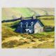 Uma bonito aquarela de uma exploração agrícola de pedra galesa que se instala nas montanhas do País de Gales UK. com