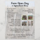 Um panfleto para fazenda de dias abertos, com fundo ou um velho vagão rústico de feno e quatro fotos individuais pequenas de cavalos rascunhos, tratores de colheita, vacas e borregos. Essas fotos podem ser todas mudadas, mas as menores precisam ser quadradas para obter melhores resultados. O texto pode ser alterado preenchendo os campos, mas certifique-se de que cada linha é curta o suficiente. Se for necessária alguma ajuda com a personalização, entre em contato comigo através do botão de mensagem da loja no bar do menu à esquerda.