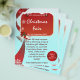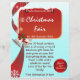 Folheto de Negócios Justo do Mercado de Natal. Perfeito para feiras locais de artesanato, negócios ou caridade. Basta editar com os detalhes escolhidos. A design apresenta um cartaz pendurado coberto de neve que diz "Mercado de Natal". Dois sinos prateados com uma fita vermelha. Os flocos de neve se penduram no lado esquerdo.