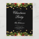 Convite para Festa de Natal Elegante com Programa e Menu com Decoração de Natal e Confetti Glitter em Dourado.