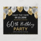 Convites de aniversário de 60 anos dentro do orçamento. Design de balão brilhante dourado e prateado falso com opções de modelo personalizáveis fáceis de mudar.