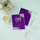 Design de "Programa de Festa de aniversário" elegante com Convênio Floral em Prata e Roxo com texto personalizado.