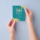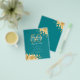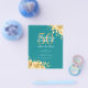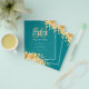 Design de "Programa de Festa de aniversário" elegante com Convênio Floral em Dourado e Teal com texto personalizado.