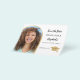 Observe que esta opção Save the date (Salvar a data) está no papel do folheto e muito fina. Os envelopes não estão incluídos. Para Cartões salve a data mais espessos (mesmo design) visite nossa loja. Uma foto Salve a data de uma festa de formatura. Na frente: adicione sua própria foto vertical do formando. Um falso quadro de arco de fotos dourado. Um fundo branco chic, texto preto. Modelos para um nome e data. O nome e o texto: Salvar a Data são escritos com um script de estilo moderno com letra manual. Com um boné, tassel superior. Voltar: detalhes da festa.