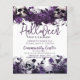 Um lindo modelo de panfleto floral floral de halloween. Este design roxo e preto, gótico, com flores e crânios. Fácil de personalizar com os seus próprios detalhes de festa tematizada no halloween.