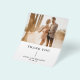Obrigado de casamento no estilo contemporâneo e moderno que você flyer (impresso em papel de impressora fino - envelopes NÃO incluídos) com um simples e mínimo design com "Obrigado" junto com seus nomes e data de casamento em negrito com a sua foto favorita. O verso tem uma segunda imagem, seu monograma inicial e sua mensagem personalizada. Este obrigado de casamento tipográfico preto e branco minimalista que você folheou pode ser personalizado para qualquer cor que você escolher na ferramenta de edição de design.