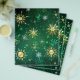 Fundo de Natal verde com flocos de neve de joias verdes e douradas. Flocos de neve ouro. Natal.