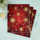 Fundo Vermelho de Natal com flocos de neve de jóias douradas e brancas. Flocos de neve dourados.