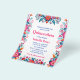 Promova sua celebração de Quinceañera em estilo com nossa Floral Quinceañera White Festa de Aniversário Mexicano Fiesta. Este folheto personalizável e atraente apresenta um fundo branco adornado com padrões florais vibrantes turquesas, laranja e cor-de-rosa, combinando perfeitamente o design moderno com os elementos tradicionais mexicanos. O nome e os detalhes do evento de Quinceañera ocupam o palco central, criando um incrível apelo visual que captura a essência do dia especial. Feito com atenção aos detalhes, esse folheto serve como ferramenta perfeita para espalhar a palavra sobre a celebração, seja compartilhada pessoalmente ou digitalmente. Aumente sua promoção de eventos com este panfleto chic e personalizável que dá o tom para uma Quinceañera vibrante e festiva.
