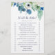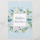 Essa clássica flor branca que ela jogaria é perfeita para um chá de casamento na primavera. O elegante design floral apresenta marfim macio e rosas brancas, peonias e crisântemo com toques de flores azuis de cor azul-rosada e folhagem verde. Personalize a parte traseira da placa com o nome da noiva e a data do chá.