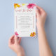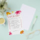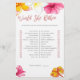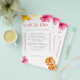 O cartão de jogo "Ela Preferencialmente" com design floral tropical, folhas rosa e amarelas e mesa de duas colunas com opções personalizáveis.