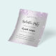 Por favor, note que este convite está no papel de folheto e é muito fino. Os envelopes não estão incluídos. Para convites mais espessos (mesmo design) visite nossa loja. Um convite moderno e na moda. Um fundo com aparência de prata falsa com brilho de luz violeta, brilhos. Personalize e adicione o nome e os detalhes da festa.