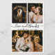 Orçamento, Elegante, Casamento de Colagem Fotográfica Acondicionada à Mão. Obrigado, personalizado barato de baixo orçamento. Na moda, obrigado de casamento minimalista, modelo de papel com três fotos na frente e uma foto na parte de trás. Com o texto "Amor e obrigados" em uma letra escrita tipográfica escrita, escrita à mão, em preto, sobre fundo branco. Na parte de trás, uma foto horizontal e seu obrigado, você envia uma mensagem modelo. ***POR FAVOR, NOTE! *** O PAPEL ORÇAMENTAL/FLYER É MAIS FINO DO PAPEL. SEM ENVELOPES INCLUÍDOS.*** ATUALIZE O PAPEL PARA UM PAPEL MAIS ESPESTO. *** Cartão postal: https://www.zazzle.com/wedding_photo_collage_love_and_thanks_thank_you_postcard-256313964226193537?dz=f2d662d9-964e-4076-bd13-f7f3df9e0ea7 Cardstock Tradicional com Envelopes: https://www.zazzle.com/love_and_thanks_script_wedding_photo_thank_you_card-256632561302382055 Personalize o nome personalizado e a mensagem do obrigado. Se preferir escrever manualmente a sua nota, basta eliminar o texto de amostra para obter mais espaço. Se precisar de ajuda ou item correspondente, entre em contato com o designer!