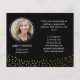 Folheto duplo para um fotógrafo profissional, onde você pode mostrar seu trabalho em uma colagem de fotos com espaço para seis fotos. Adicione seu nome e especialidade ou título ou serviço no cobrir. A parte de trás apresenta um confete dourado falso, uma foto de perfil de você mesmo, e sua informação de contato em branco contra um fundo preto.