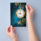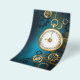 Turquesa, texturizada, fundo steampunk com latão e engrenagens douradas, chave prateada e relógio. Estilo Steampunk.