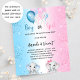 Por favor, note que este convite está no papel de folheto e é muito fino. Os envelopes não estão incluídos. Para convites mais espessos (mesmo design) visite nossa loja. Para um chá de fraldas revelador de gênero. Um plano de fundo azul branco e rosa. Decorados com balões claros e azuis, cor-de-rosa e branco e poeira brilhante. Um elefante bebê e um elefante da gaby. Personalize e adicione os nomes dos pais a serem e os detalhes da festa. O nome e o texto: Boy ou Girl são escritos com um estilo escrito à mão.