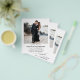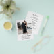 Convite para casamento de orçamento de fotos moderno (impresso no folheto - envelopes não incluídos) com um design mínimo preto e branco com sua foto favorita. Abaixo estão os detalhes de seu evento em uma combinação de fontes sans serif simples e um script elegante. A parte traseira tem seus detalhes adicionais com o Código QR opcional (você pode remover o código QR na ferramenta de edição de design). Este convite é excelente para qualquer estilo de casamento.