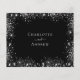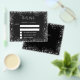 Por favor, note que esta nota RSVP está no papel do folheto e é muito fina. Os envelopes não estão incluídos. Para placas RSVP mais espessas (mesmo design) visite nossa loja. Um fundo preto chic. Decorado com falso brilho prateado, faíscas. Personalize e adicione a resposta por data e seus nomes.