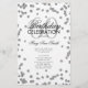 Design de "Programa de Festa de aniversário" elegante com Glitter Confetti em Prata com texto personalizado.