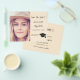 On front: Add your own vertical size photo of the graduate. A chic champagne colored background, black text. Templates for a name and date. The name and the text: Save the Date are written with a modern hand lettered style script. With a cap, tassel topper.