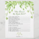 Jogos personalizados de chá de panela com cor d'água de trevo verde (O Jogo Novo na frente e Quem Conhece a Noiva do Melhor nas costas). Esta folha de chá de panela de folhagem verde é uma boa escolha para um chá de casamento de verão ou um chá de casamento de primavera. Esta folha de jogos de chá de casamento verde em aquarela apresenta lindas cores aquáticas, trevo em cascata verde, folhas, galhos e outras folhagens. Esta folha de chá de panela de casamento verde tem um estilo chic boêmico elegante. Dois jogos em um! Trabalharia para um irlandês ou uma Rua. A festa temática do Dia de Patrick por causa do trevo das quatro folhas. Outras personalizações são possíveis (fonte, cor da fonte, cores de fundo, etc.), clicando em "clicar para personalizar o link" abaixo das opções de personalização. Entre em contato com o designer se quiser que qualquer outro item correspondente vá com este design que ainda não esteja incluído na coleção.