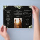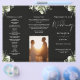This elegant wedding trifold program features floral greenery on a black background. Designed by Thisisnotme©
